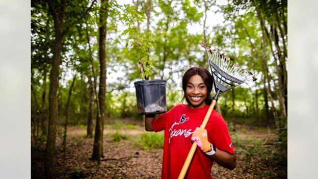 For every touchdown scored by the Texans in the 2022, 2023, and 2024 seasons, the team pledges to plant 1.5 trees in the greater Houston area. To kick off the initiative, Houston Texans staff and cheerleaders gathered in Hermann Park Conservancy on May 11 to plant 25 inaugural trees. The group also removed invasive species from the area to eliminate competition for the newly planted trees and restore native habitat conditions.