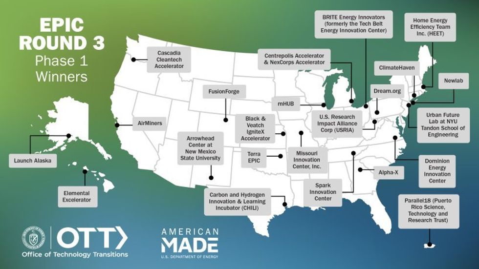 The DOE's Office of Technology Transitions announced the the first phase of winners of the Energy Program for Innovation Clusters, or EPIC, Round 3. The local initiative is one of 23 incubators and accelerators that was awarded $150,000 to support programming for energy startups and entrepreneurs.
